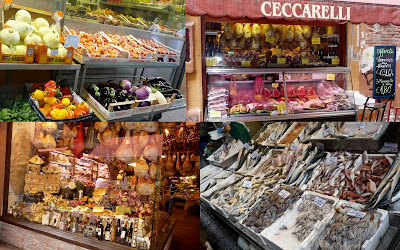 Another nickname is la grassa (the fat one), and this harks back to Bologna's fame as a centre of cuisine.  We can certainly attest to this as we ate very well while there.  Just off the centre is a small area of very narrow streets which must have been the home to the old markets of the city.  Here you can still find a lovely and appetising array of little shops selling just about everything you need to make a delicious gourmet meal.  Here are a few of the shop fronts.